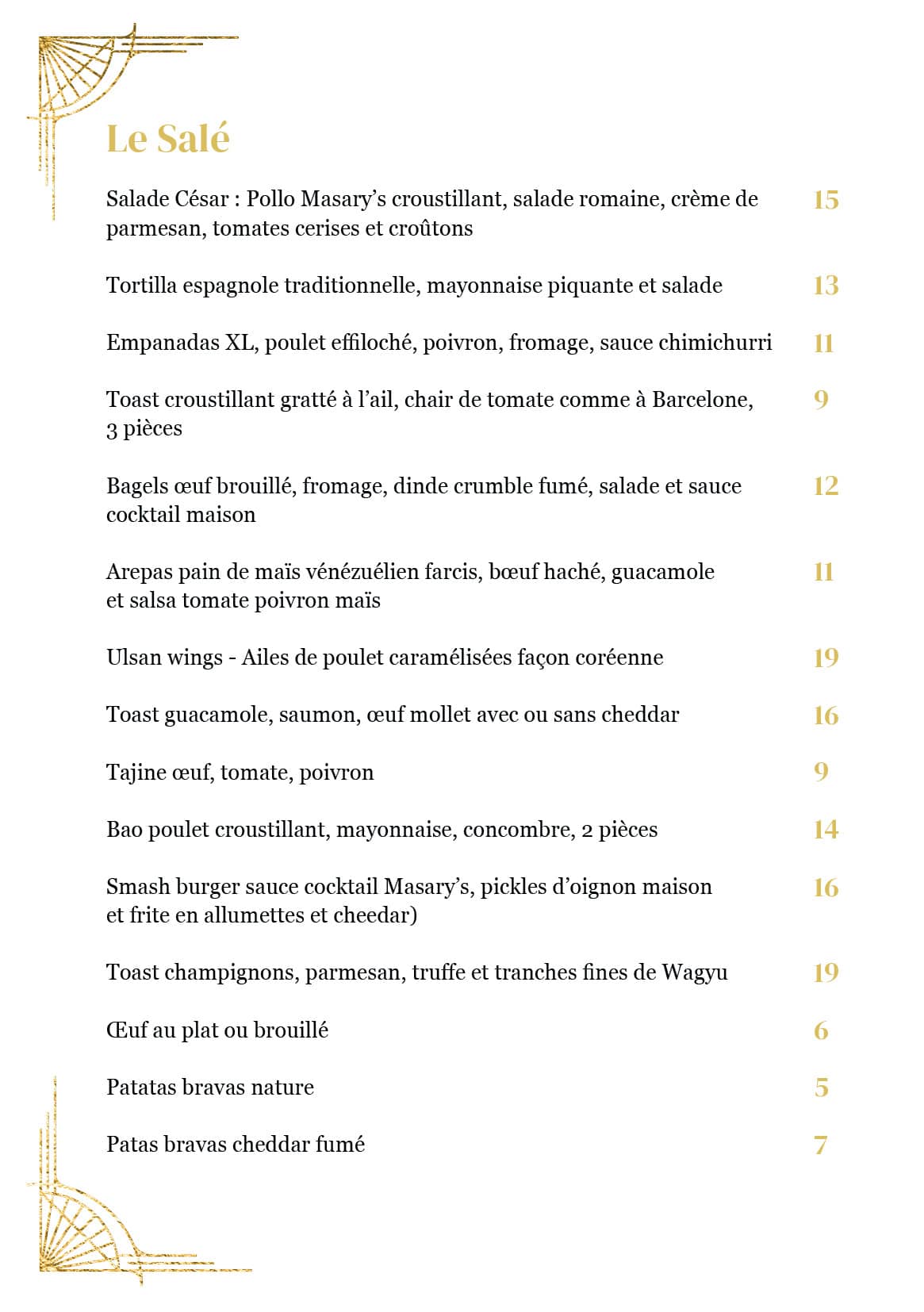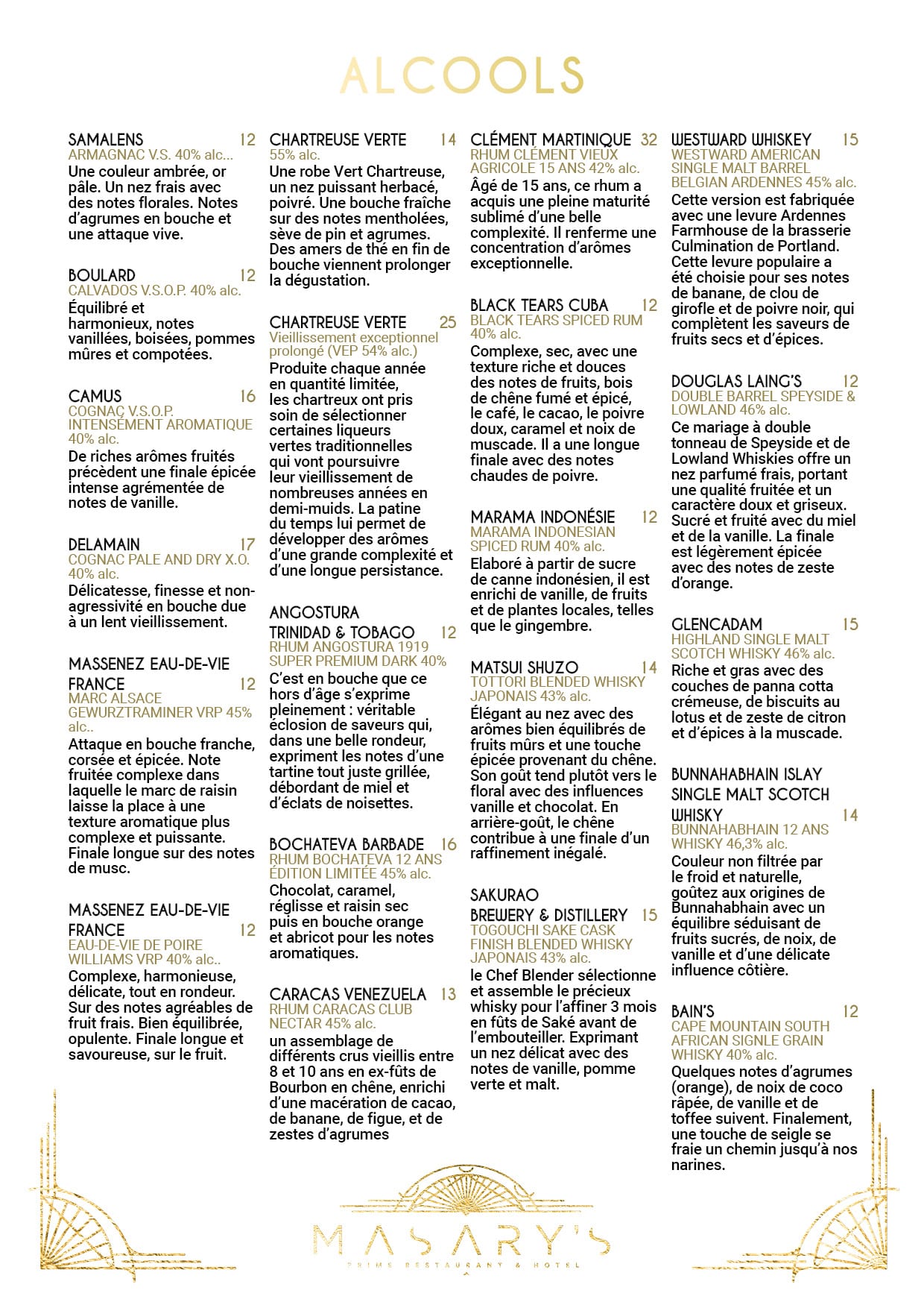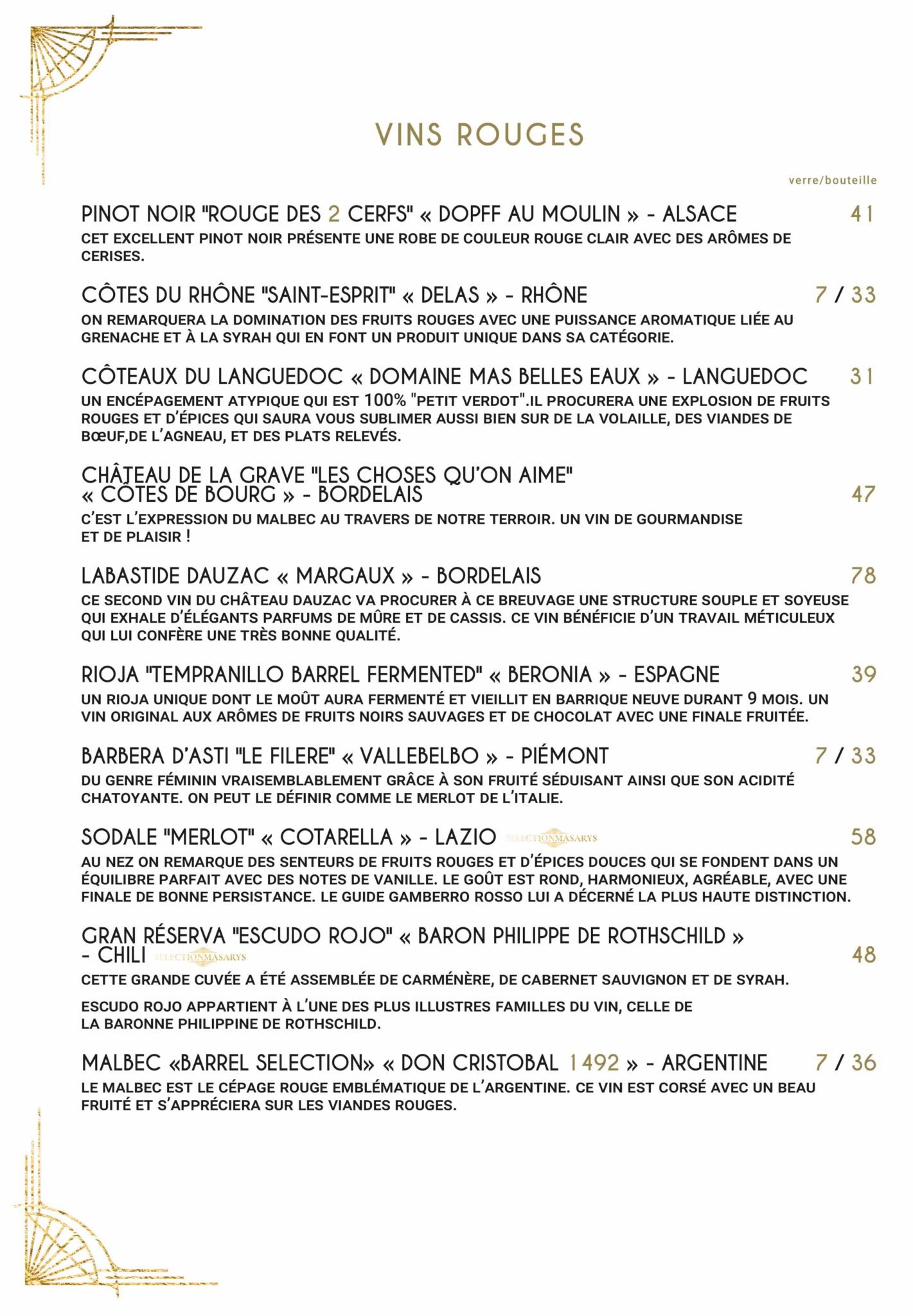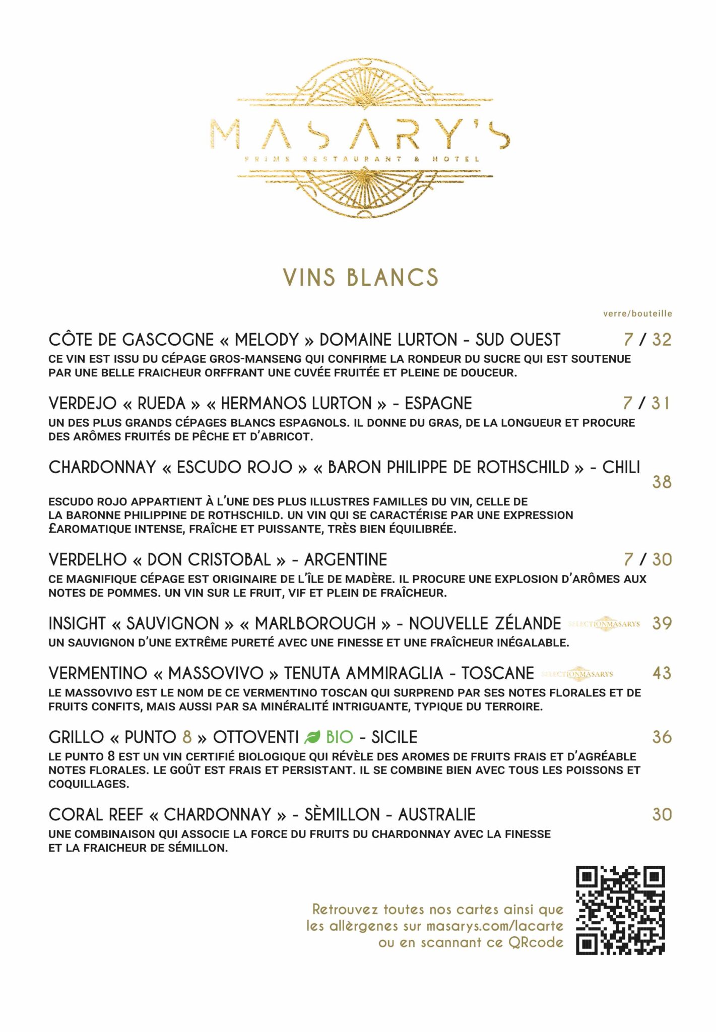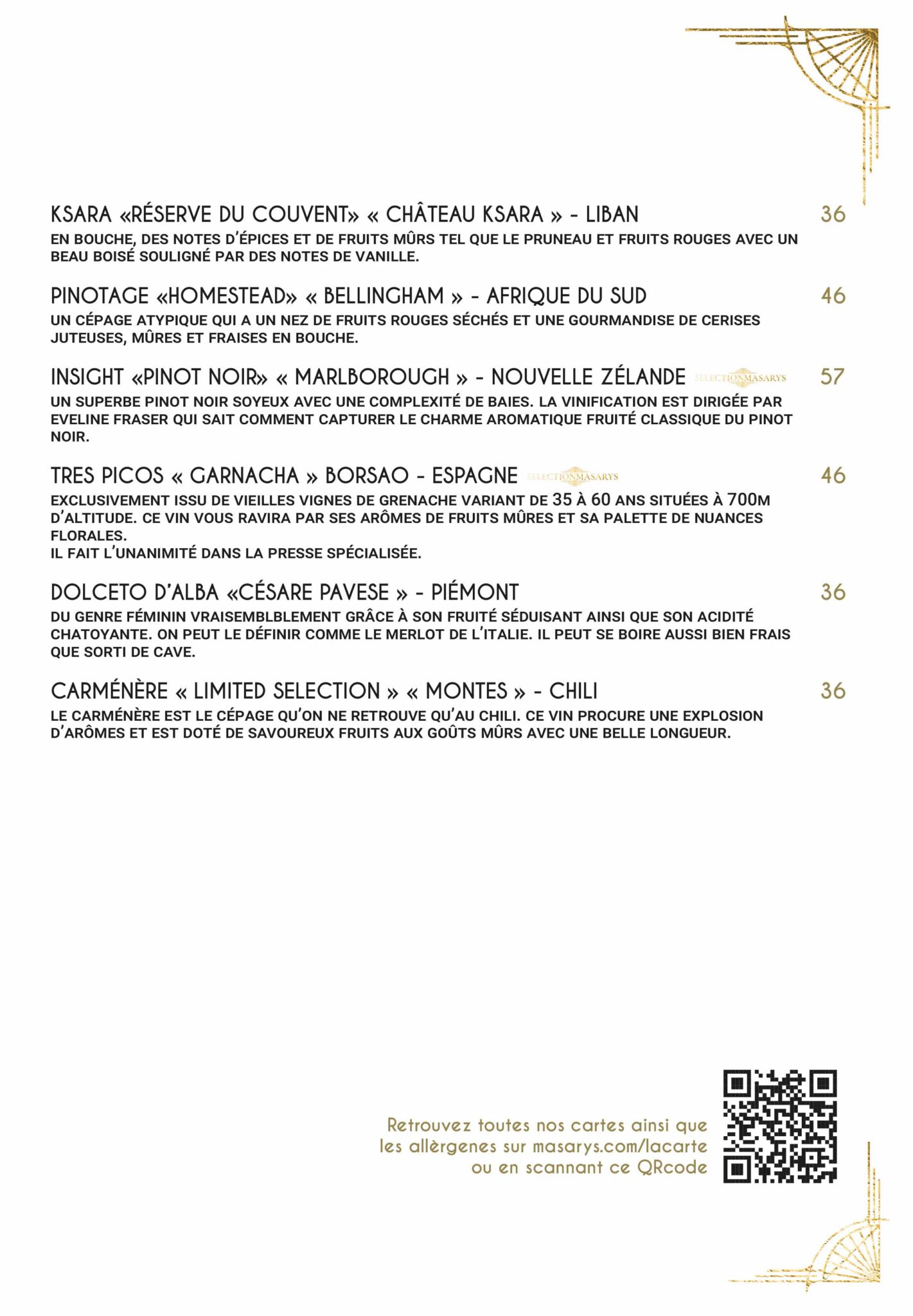 Masarys – La carte des Vins